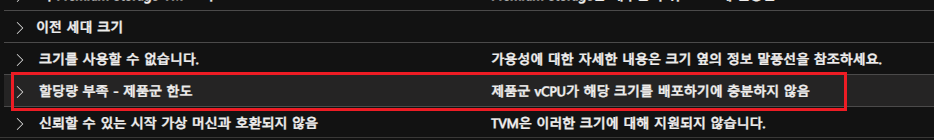 그러면 거의 마지막쯤에 아래 이미지와 같이 할당량부족이란게 보일건데 한번 확장해보도록 하자.