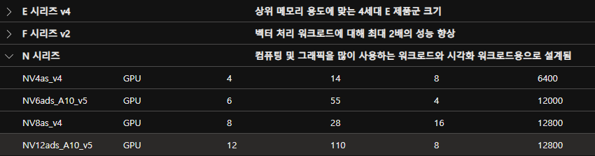 그러면 아마도 아래 이미지처럼 NV4as_v4, NV8as_v4가 나올거다