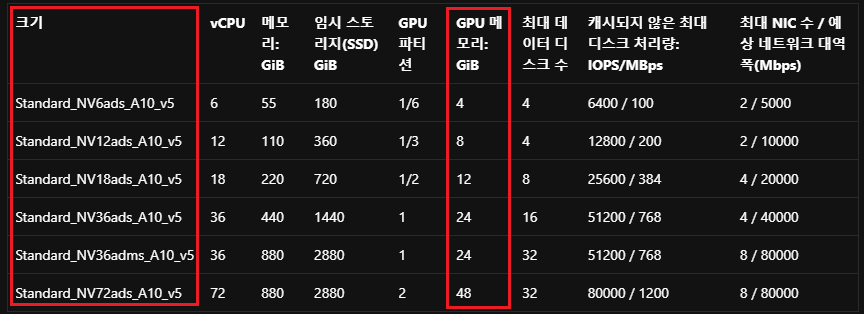 https://learn.microsoft.com/ko-kr/azure/virtual-machines/nva10v5-series