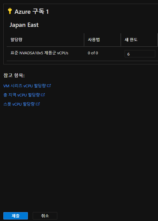 혹시 사용하고 싶은 다른 제품군이 있다면 이 포스팅에서 알려준 방법대로 해당 제품군에 대해 할당량을 늘려달라고 갓 마소 정부님께 요청하도록 하자