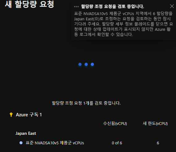 즉 Azure에서 해당 지역 가용성 영역에서 더 이상 사용 가능한 vCPU가 없기 때문에 할당량을 늘려달라고 마소 정부에 요청하는건데 딥러닝 학습을 목표로 한다면 할당량 요청할때 적어도 GPU 메모리 8G 이상 짜리로 신청하는게 좋다.