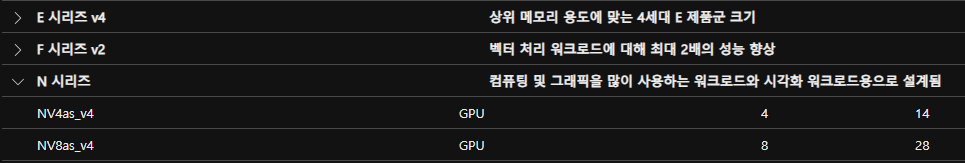 그러면 아마도 아래 이미지처럼 NV4as_v4, NV8as_v4가 나올거다