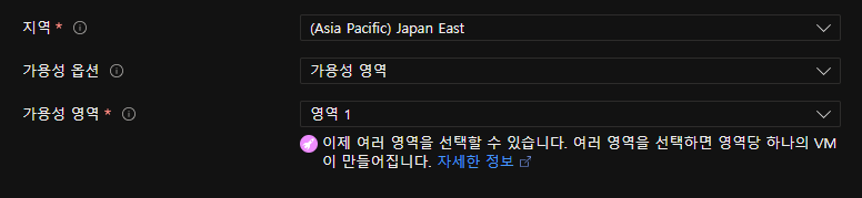 지역과 가용성 영역이 뭐냐면 지역이 데이터센터의 위치이고 가용성 영역은 해당 지역내에서 물리적으로 분리된 데이터센터그룹이라 보면 된다. 어떤 지역을 선택하냐에 따라 똑같은 성능이라도 가상머신 가격이 달라지며, 응답시간 차이도 나게 된다. 또한 어떤 지역, 가용성 영역을 선택하냐에 따라 만들수 있는 가상머신 종류가 달라지므로 현재 선택한 지역과 가용성 영역을 꼭 확인하고 넘어가자