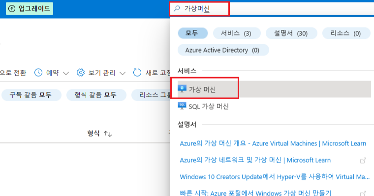 혹시 위의 화면이 안나온다면 아래 화면과 같이 가상머신을 검색해서 클릭하자.