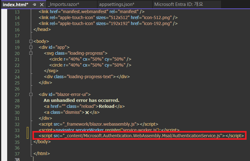 <script src="_content/Microsoft.Authentication.WebAssembly.Msal/AuthenticationService.js"></script>
